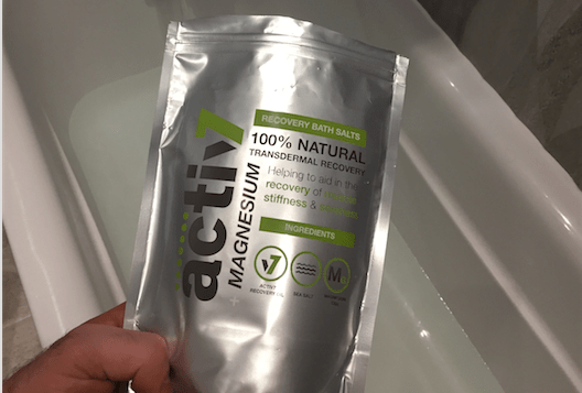 There isn’t an immediate impact like with the activ7 recovery oil, but a more gradual effect over time. I found that the magnesium and oil from the bath salts soak through the skin to help soothe joints and fatigued muscles.